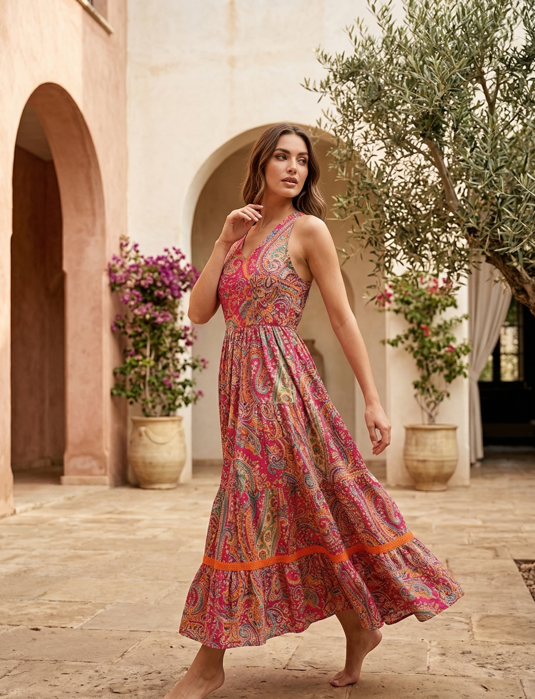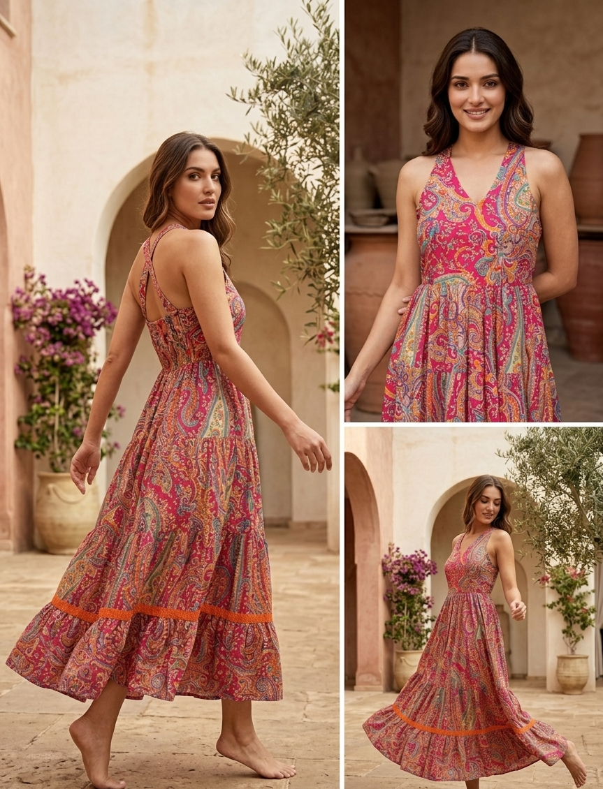 “Embrace elegance with our Zoya Paisley Dress. Featuring a vibrant tiered design and premium breathable fabric, it’s perfect for summer outings and evening glam.”
